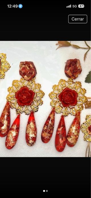 Pendientes flamenca Pueden ser colgados o de tuerca 1*7€ 2*12€ 3 o más sería 5€ la unidad