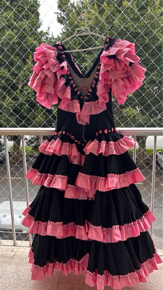 Vestido Flamenco Negro y Rosa Hecho a Mano