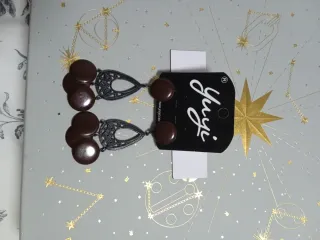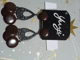 Pendientes de estilo flamenco con un diseño elegante. - Detalle de filigrana en metal negro. - Cuentas circulares en tono marrón oscuro. Estado: nuevo con etiquetas