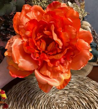Pendientes de flamenca , en tonos beige , naranja y dorado Peonia maxi naranja .
