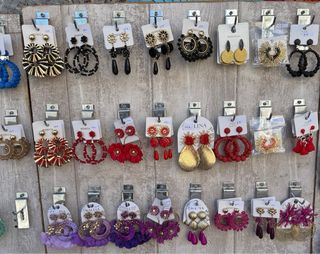 Conjunto de pendientes con un diseño único y detalles coloridos. - Acabado en tono dorado. - Combinación de abalorios multicolores. Precio por unidad 1 par 6€ 2 pares 10€