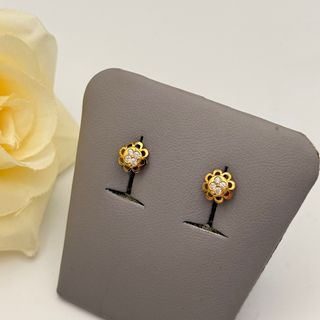 Pendientes de oro 18kt con flores y circonitas. Peso : 0,53gr Joyería Imán Gold Joiers Calle Jerusalem 30, Barcelona Whatsapp: +34 644 929 013 s52