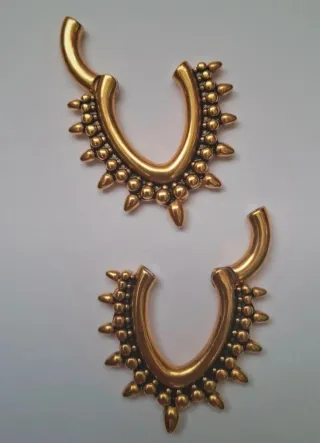 Pendientes pesos para dilataciones de acero con diseño de gota de agua y pinchos en color dorado. Se cierran con imán y estan en perfecto estado. Estilo punk, quedan genial.