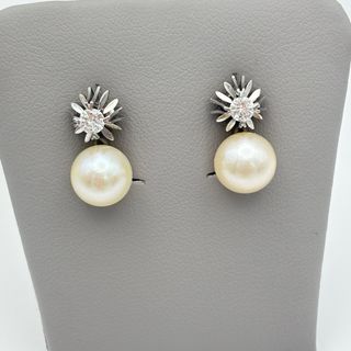 Pendientes de oro 18kt con diamantes 2x 3,63mm 0,18сt y perlas. Peso: 8,35gr Joyería Imán Gold Joiers Calle Jerusalem 30, Barcelona Whatsapp: +34 644 929 013 s7