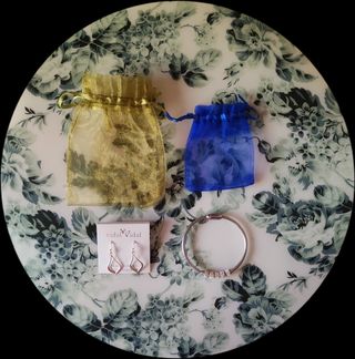 1 colgante con 1 par de pendientes a juego y 2 pulseras, una de ellas con enganche tradicional y la otra con enganche de imán, para manos finas.