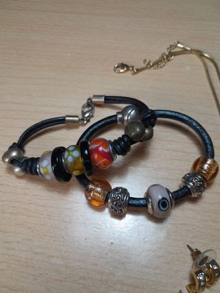 2 collares con imanes para darle forma una pulsera ajustable 3 pares de pendientes (los rosas de cerdito están un poco descacarillados) está todo sin usar