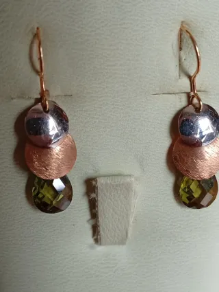 Elegantes pendientes de oro de 18 quilates. - Diseño delicado y llamativo. - Cierre seguro para mayor comodidad. -Hay un pendiente que está un poco torcido y se puede arreglar. -Oro blanco, amarillo y rosa. -6,90 cm longitud,son muy largos y muy pesados.