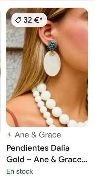 Elegantes pendientes de la marca Ane & Grace. - Diseño ovalado con detalle superior. - Combinación de tonos dorados y blancos.