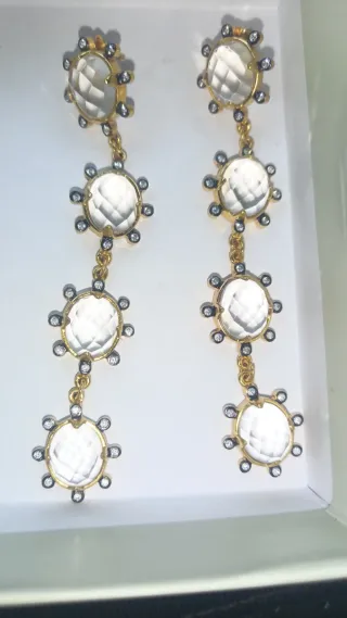 Pendientes largos dorados con piedras blancas