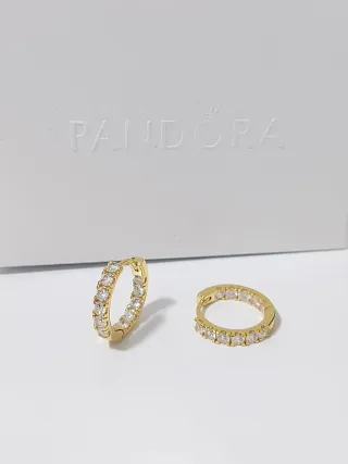 Elegantes pendientes de aro de la marca Pandora, con un diseño clásico y brillante. - Acabado en tono dorado. - Decorados con circonitas blancas.