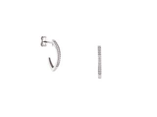 Elegantes pendientes de medio aro en oro blanco de 18 quilates, adornados con circonitas. - Diseño de medio aro. - Fabricados en oro blanco de 18 quilates. - Circonitas brillantes, Engastadas en carril. Resto de tienda cerrada por jubilación nuevo sin estrenar. Por favor no hacer ofertas ofensivas marco mis artículos con un precio razonable. Lo puedo entregar en Segovia Ávila o Madrid o enviar a casa.