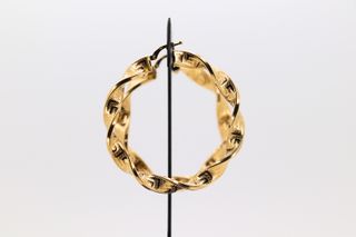 Elegantes pendientes de aro de oro de 18 quilates. - Diseño retorcido con acabado texturizado. - Cierre de presión seguro. Peso:2,29