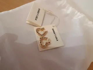 Conjunto de pendientes en tono dorado con detalles en negro, ideales para un look bohemio o celestial. El lote incluye varios diseños que se pueden combinar entre sí para un estilo "ear party": Aros con charm circular: un diseño sencillo con esmalte negro brillante. Pendientes de corazón: con detalle de "ojo" central y una luna creciente colgando en la parte inferior. Pendientes largos asimétricos: uno con un corazón negro y una cadena larga de cristales, y otro con forma de luna y cadenas finas con pequeñas estrellas colgantes. Detalles del producto: Color: oro y negro. Estado: nuevo (se entregan con su soporte original).