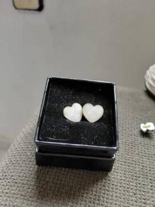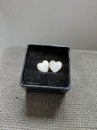 Bonitos pendientes con forma de corazón. - Diseño de doble corazón. - Acabado dorado y blanco.