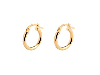 Elegantes pendientes de oro con un diseño circular y detalles de circonitas. - Acabado en oro. - Tres circonitas incrustadas en cada aro.