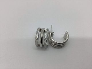 Pendiente de aro de la marca Pandora( 1 unidad) - Diseño con varias bandas. - Detalle de pequeñas piedras incrustadas en el aro.
