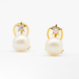 Pendientes Oro 18KT Perla y Brillante