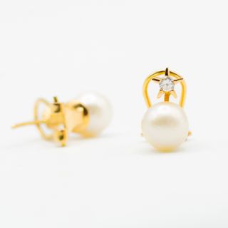 Pendientes Oro 18KT Perla y Diamante