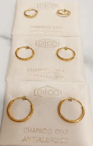 Lote 3 Pendientes Aros Chapados Oro GILCO