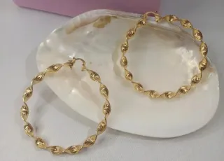 Pendientes Aro Grande Rizado Chapado Oro 18k