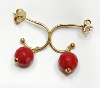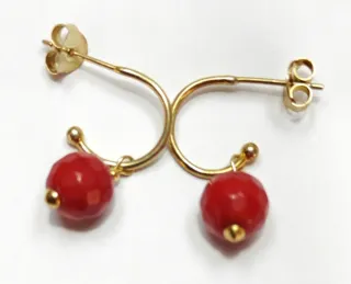 Preciosos pendientes con coral mediterráneo,con plata 925 baño de oro - Diseño colgante con cuentas facetadas. - Cierre de presión. Envío solo por inpost locker gracias
