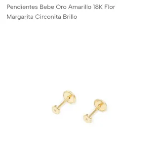 Pendientes de bebé y oro 18 kilates - Cierre de rosca seguro. - Diseño delicado. Medidas 3 mm x3mm