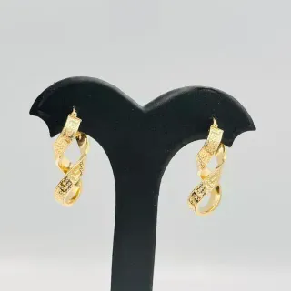 Elegantes pendientes vintage con un diseño texturizado y moderno. Diseño: - Acabado en tono dorado. - Diseño único y llamativo. Detalles: Material: Acero inoxidable bañado en oro 18k 💫 Color: Dorado 🥇