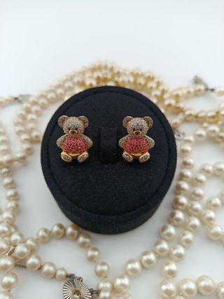 Precioso conjunto de collar y pendientes con diseño de osito. - los vendo porque no los uso - Baño de oro. - Detalles en pedrería blanca.