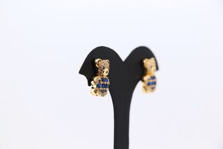 PENDIENTES OSO CON CIRCONITAS AZUL. Oro 18k. Peso: 10gr, Largo: 2,40cm, Ancho: 17mm. Piedras:Circonitas Ref.(2836). Joyería nueva. Tenemos tienda física en Valencia, Ciudad Real, Madrid, Alicante, Elche, Murcia y Granada. NOTA: Puedes ver mas joyería en nuestro perfil. NO HACEMOS ENVÍOS.