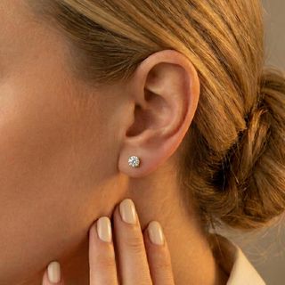 Pendientes de oro blanco 18k con circonitas de 4 mm. Cierre en rosca. Modelo "AMAIA" ORO BLANCO 18K. Ver en web de Sánchez Joyerías que es de donde son.