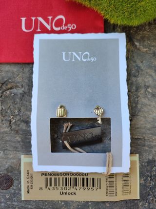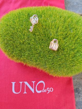 Preciosos y originales pendientes de la marca española Uno de 50 modelo Unlock de metal bañado en oro, uno con forma de candado y otro con forma de llave de corazón. Nuevos con etiqueta! Envío a cargo del comprador. No se admiten devoluciones.