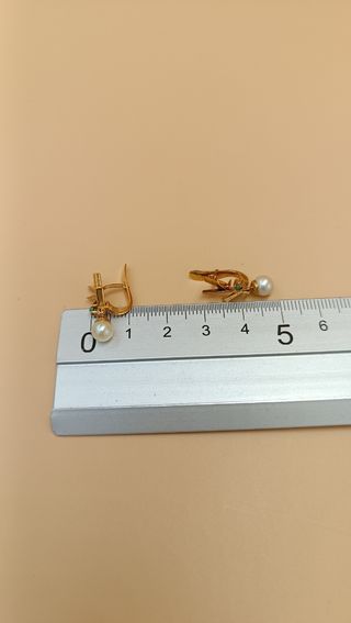 Pendientes de oro de 18kt y perla. Peso 2'94gr. Joyería Zimt & Pfeffer Viladecans, dirección calle Mare de Deu de Montserrat 19 Viladecans. Teléfono WhatsApp 644027784. Sem 24/25.