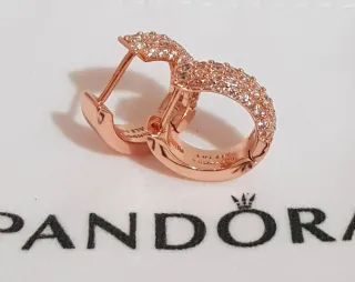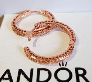 Pendientes de aro bañados en oro rosa, con circonitas. Con sellos grabados de autenticidad Pandora Ale Met. 💝 ¡Con su cajita incluida! #pandora #pendientes #joyas #ale #Met #joyas #regalos #complementos #bañoenoro #zarcillos