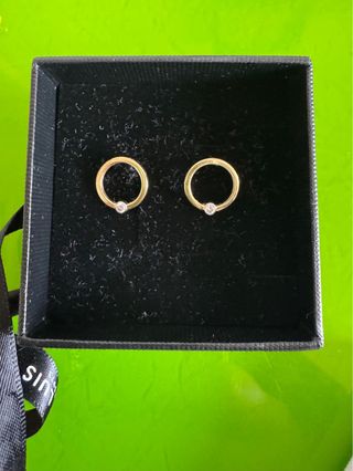 Piercing Bass, realizado en Plata de Ley 925 con baño denso de oro de 18k y circonita que hará que se mantenga como el primer día aunque no te lo quites nunca Pendientes Lorem, realizados en Plata de Ley 925 con baño denso de oro de 18k y circonitas blancas que hará que se mantengan como el primer día aunque no te los quites nunca. Aro: 1,3cm de diámetro. Cierre sistema de click. Nuevos, nunca usados.