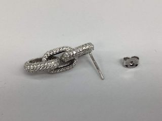 Elegantes pendientes de oro de 18 quilates, con un diseño lineal y adornados con circonitas brillantes. Perfectos para añadir un toque de luz a tu estilo. Usados en pocas ocasiones - Fabricados en oro de 1ª Ley. - Diseño lineal con circonitas.