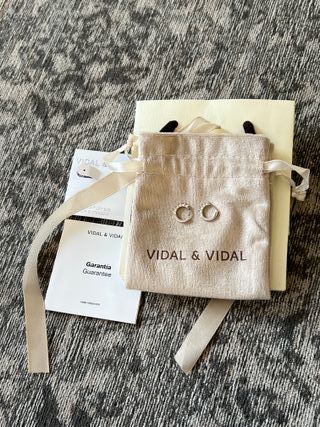 Elegantes aros de la marca Vidal & Vidal. - Diseño circular. - Acabado brillante. - Puestos una vez.
