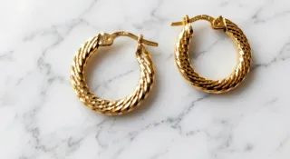 Elegantes pendientes de aro con baño de oro. Su diseño texturizado les da un toque especial. - Plata bañada en oro. - Diseño de aro con textura.