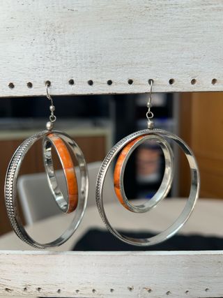 Pendientes 2 aros (plateado + naranja)