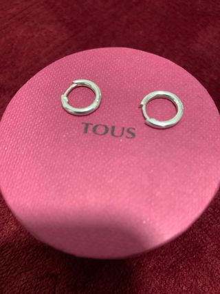 Elegantes aros de la marca Tous. - Diseño circular. - Acabado plateado.