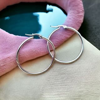 Preciosos aros de acero inoxidable, disponibles en plateados de 3 cm. de diámetro. - Diámetro de 3 cm. - Material: acero inoxidable. - Diseño elegante y minimalista. Entregamos en mano o enviamos.