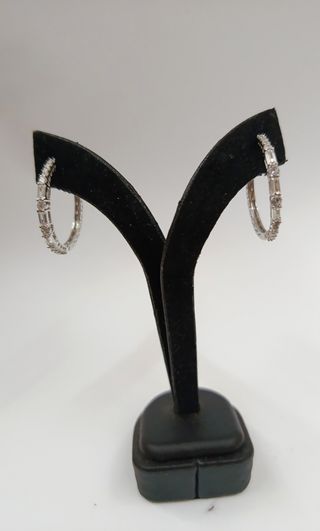 Aros Plata de Ley con circonitas en blanco y baño de rodio. Fabricacion Artesanal.