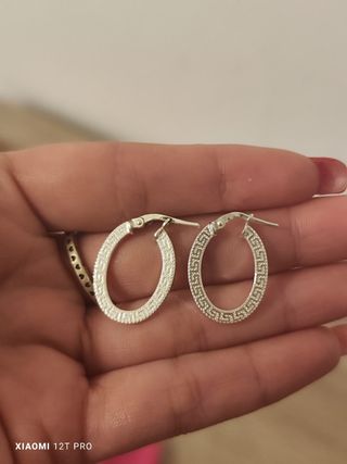 ÚLTIMO PAR! Pendientes aros estilo Greca plata