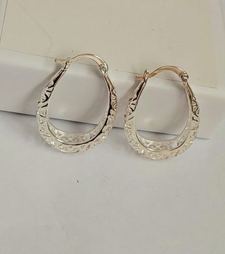 Pendientes aros reliados en plata de primera ley. Cierre criolla. Miden 2,5cm de diámetro. Solo envíos. Somos tienda online.