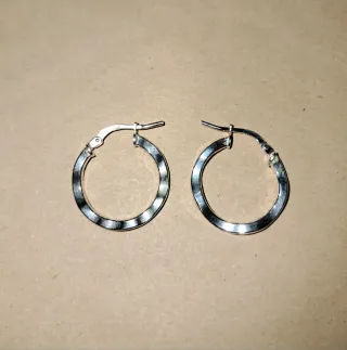 Preciosos pendientes de aro con un diseño ondulado. Son dos pendientes de plata. - Diseño elegante y moderno. - Acabado brillante. - Perfectos para cualquier ocasión. Baño de plata Medida en fotos Grosor miden 0,04 mm