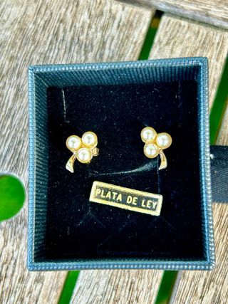 Pendientes Trébol Perlas Baño Oro en Plata ley.