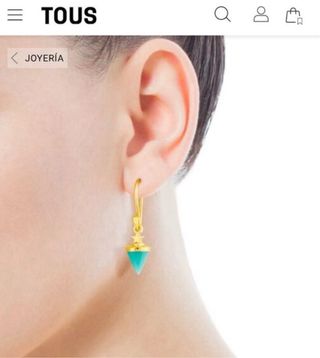 Pendientes de la marca Tous con un diseño elegante. Precio en tienda 119, modelo Tack. Plata de ley con baño de oro de 18k. - Colgante con forma de cono en turquesa. - Detalle de estrella en la parte superior. - Cierre de gancho. Se vende con su cajita tous nuevos.