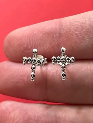 Llamativos Pendientes Cruz Calaveras Plata 925