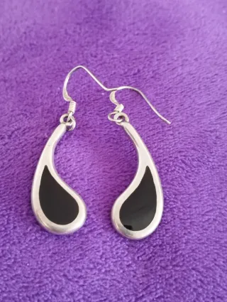 Elegantes pendientes de plata de ley con un diseño de lágrima y un detalle en negro. - Plata de ley. - Diseño de lágrima. - Inserción en color negro.