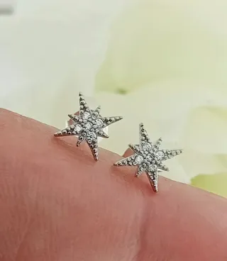 Pendientes con diseño de estrella polar, perfectos para añadir un toque de brillo. - Medidas: 9x9mm. - Material: Plata de ley.