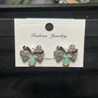 Elegantes pendientes con diseño de lazo y ópalo natural y poste de plata 925. ❤️ Ópalo etíope natural 5×6mm ❣️Material: Cobre bañados en plata ✨✨ Los ganchos para las orejas son de plata de ley 925. 💝 #natural #pendientes #silver #opalo #plata #earrings #opal #opale #opalite